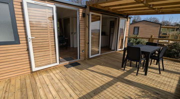 Mobil-home 5 personnes, 3 chambres, climatisé avec piscine et grande terrasse